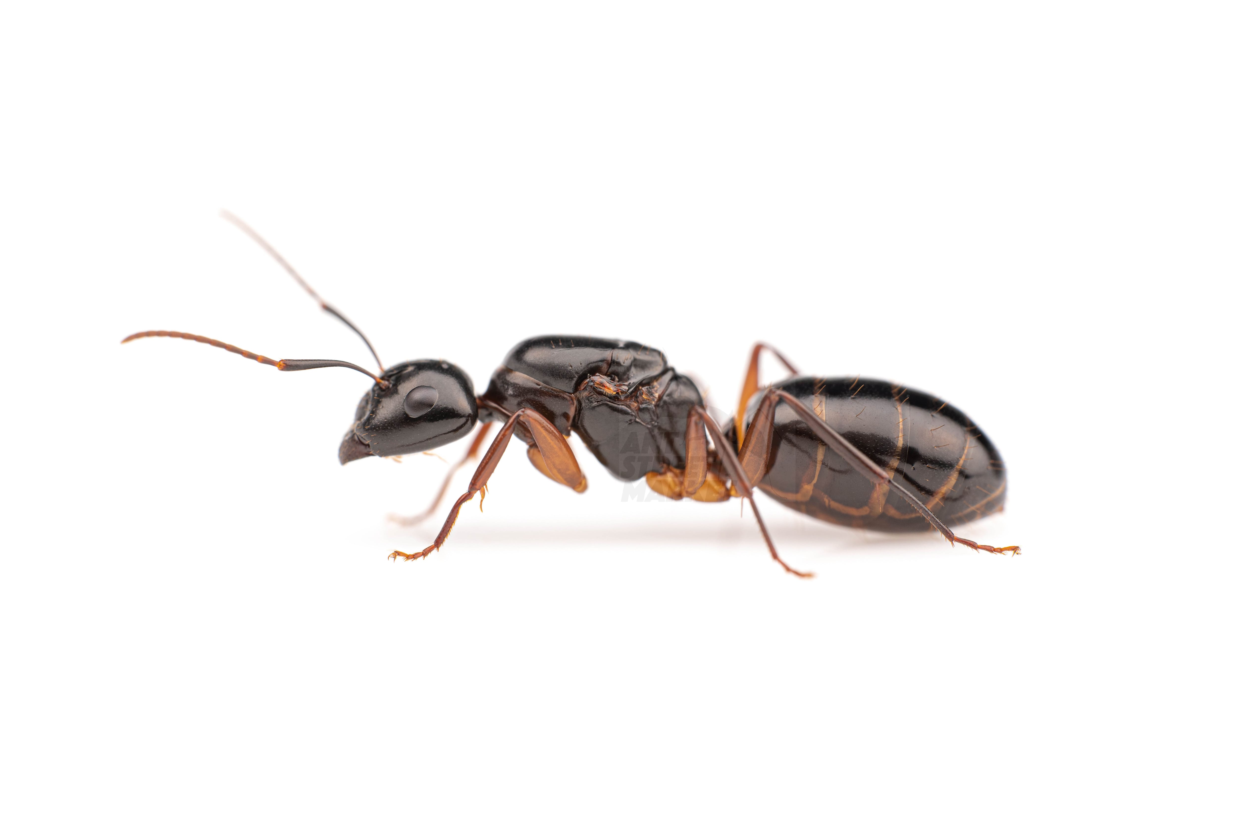 【特徴】夜行性。大型で黒い体に黄色い足を持っており、非常に美しいアリです。働きアリには様々な大きさがみられるので見応え抜群です!